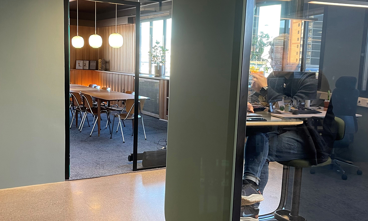 – Slik som disse mobile snakkerommene, eller stillerommene eller om du vil, som Jens Evensen Eiendom har investert i. I stedet for at gårdeier bygget stillerom med faste installasjoner, plasserte de disse såkalte «poddene» i det åpne kontorlandskapet. De gir fleksibilitet for SAIH og for fremtidige leietakere. Det mest prisgunstige og miljøvennlige for alle parter er å nettopp gjenbruke eksisterende inventar. Vi tror mange bedrifter også undervurderer signaleffekten ovenfor de ansatte – særlig de unge, avslutter Løvsland.