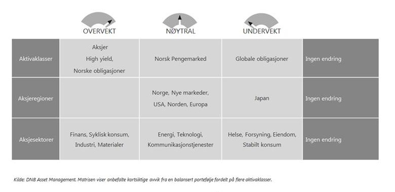 Merk: Markedssynet gjenspeiler DNB Asset Managements generelle syn på markedene. Ønsker du personlige råd rundt egne investeringer bør du kontakte en finansrådgiver som kjenner deg og din situasjon. Fremtidig avkastning vil alltid avhenge flere fohold. Blant annet av markedsutvikling, forvalterens dyktighet, fondets risiko, samt kostnader ved kjøp, forvaltning og innløsning. Historisk avkastning er ingen garanti for fremtidig avkastning. Avkastningen i et fond kan bli negativ som følge av kurstap.