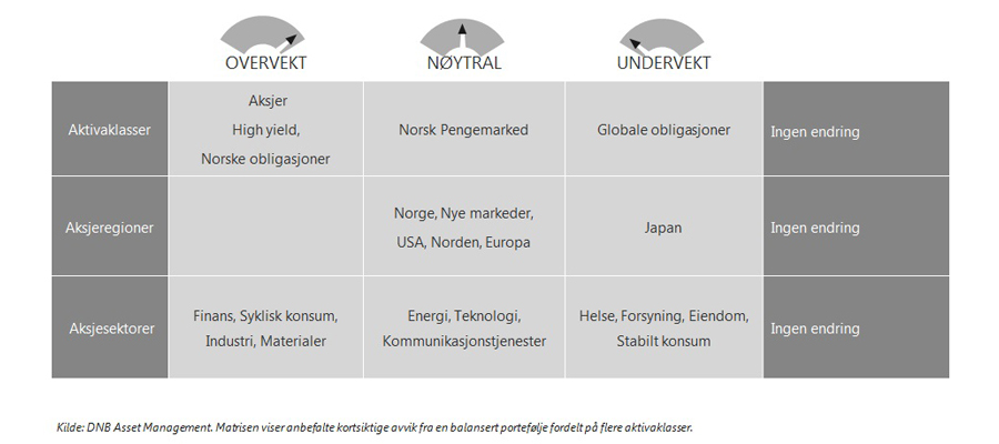 Vårt markedsyn fremover tilsier overvekt i aksjer og høyrenteobligasjoner