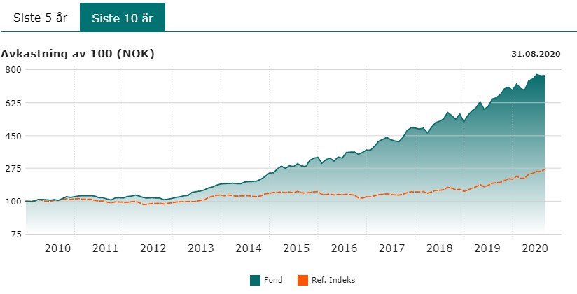 *Historisk avkastning er ingen garanti for framtidig avkastning. Framtidig avkastning vil bl.a. avhenge av markedsutviklingen, forvalters dyktighet, verdipapirfondets risiko, samt kostnader ved tegning, forvaltning og innløsning. Avkastningen kan bli negativ som følge av kurstap.