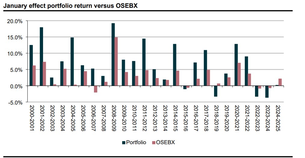 Han peker på selv om januareffekten har fungert 20 av de siste 25 årene, har den bare fungert 1 av 5 år når det har vært børsnedgang.