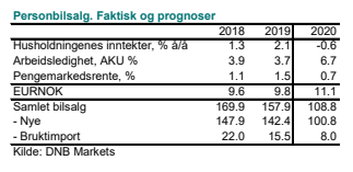 Bruktimporten har også bremset kraftig opp som følge av den svake kronekursen, og den kan bli halvert fra i fjor. Det er viktig å understreke at usikkerheten knyttet til prognosene er uvanlig stor.