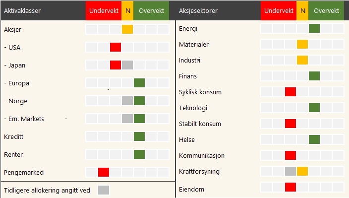 Innen aksjesektorer har vi kjøpt oss opp til nøytral i kraftforsyningsselskaper (utilities). Sektoren har lenge vært upopulær blant investorer på grunn av sensitiviteten til rentenivået og motgangen i det siste for temaet fornybare investeringer. Men sentimentet ser ut til å være i ferd med å snu til det bedre. Dels skyldes det at flere føler seg trygge på at rentetoppen er passert og at rentene skal ned herfra. Men det er også blitt klart at utbyggingen av KI og datasentre er svært kraftkrevende og vil øke etterspørselen fremover.