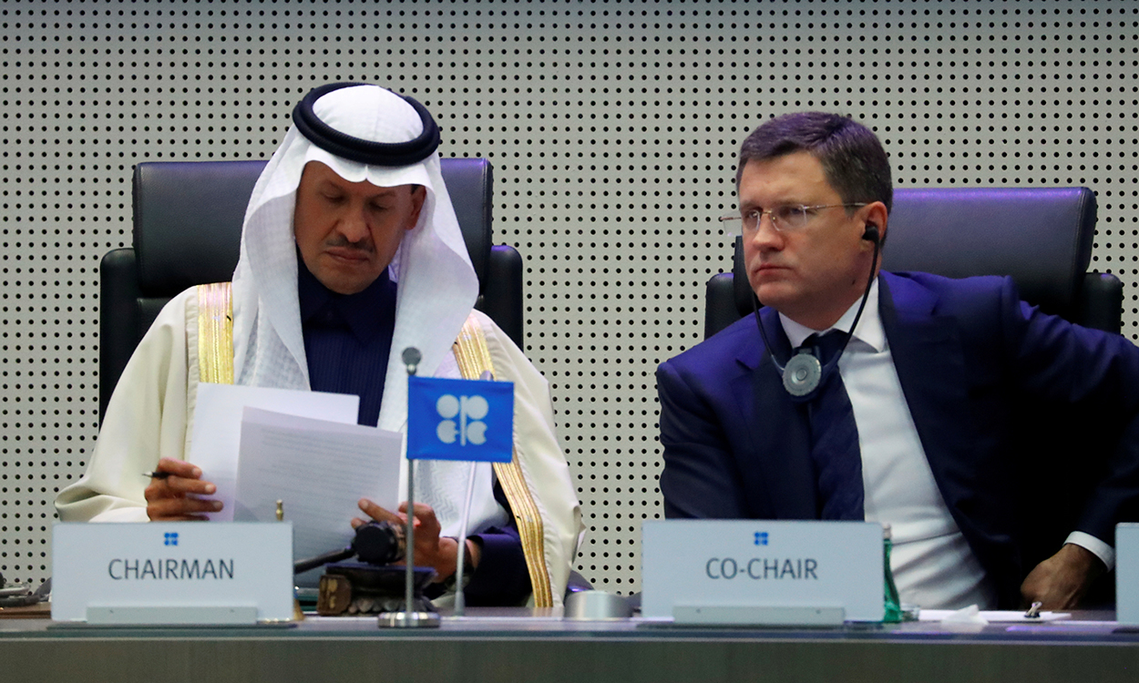 Oljeprisen steg dermed med nesten 10 dollar i løpet av uka, noe som skyldtes spekulasjoner om koordinert produksjonskutt fra USA, Russland og Saudi-Arabia. De spekulasjonene var det Donald Trump som fyrte i gang, etter at han på torsdag tvitret at han hadde snakket med den saudiarabiske kronprinsen, som visstnok hadde snakket med Russlands president Vladimir Putin, om at de var blitt enige om å kutte oljeproduksjonen med ca. 10 millioner fat om dagen, eller «kanskje mye mer».