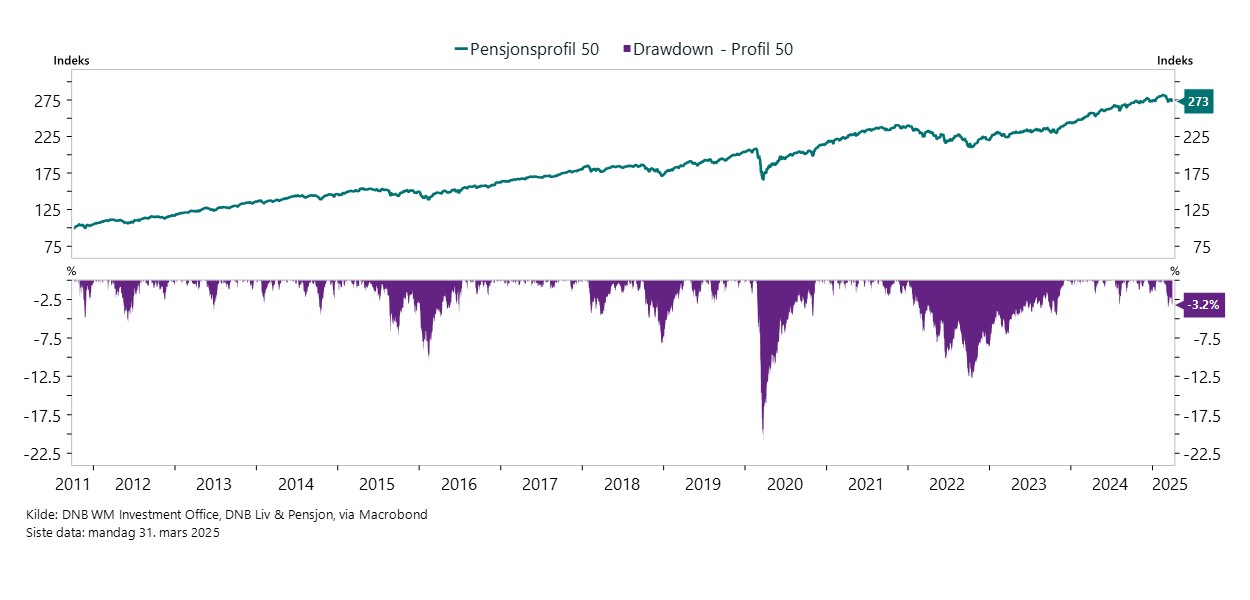 Du kan velge mellom 50, 80 og 100 prosent aksjer. Pensjonsprofilene har en andel av aksjeinvesteringene valutasikret.