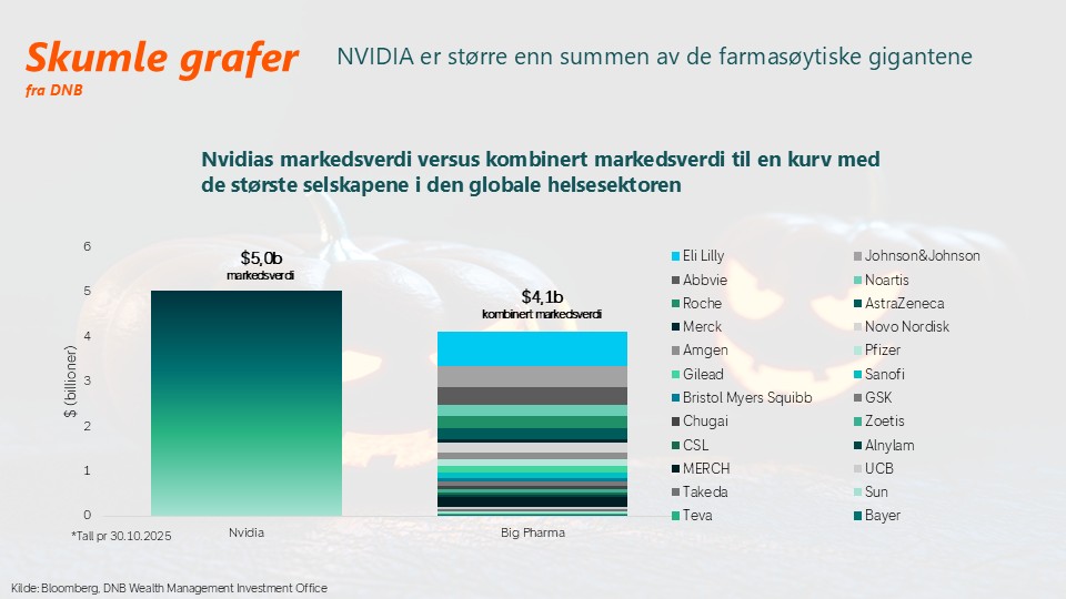 Nvidia er verdens mest verdifulle selskap. Men er det riktig at Nvidia alene skal være mer verdt enn summen av selskapene som bidrar til å holde oss friske? Helse løftes jo frem som en av industriene som virkelig skal dra nytte av AI-teknologien som Nvidia bidrar med å fasilitere.
