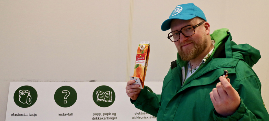 - Kildesorterer du riktig kan du vinne 100.000 kroner! Og sorterer du feil kan avfallet ditt i verste fall føre til brann eller skade, forteller Andreas Haslegaad fra Haraldrud Gjenbruksstasjon.